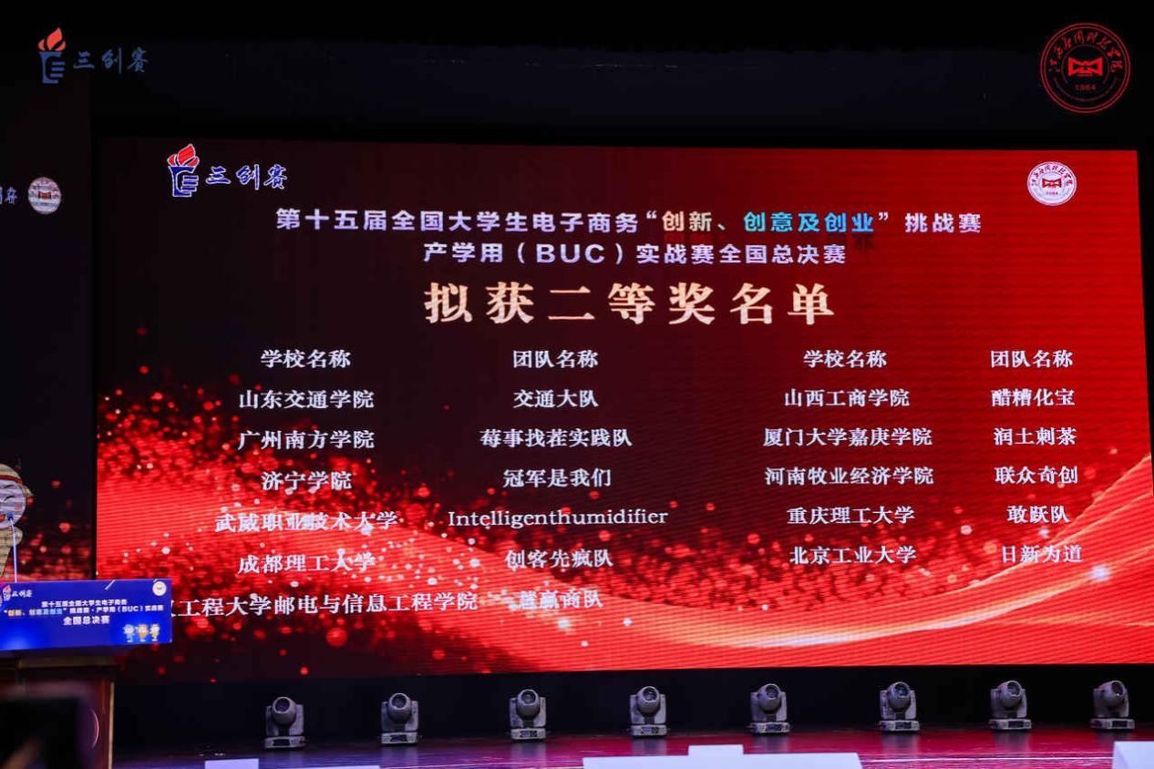 自2024年9月賽事啟動(dòng)以來(lái),經(jīng)過(guò)校賽、省賽層層選拔,最終學(xué)校4支團(tuán)隊(duì)成功晉級(jí)全國(guó)總決賽,在直播電商、鄉(xiāng)村振興、產(chǎn)學(xué)用(BUC)三大實(shí)戰(zhàn)賽項(xiàng)中與全國(guó)優(yōu)秀參賽團(tuán)隊(duì)同臺(tái)競(jìng)技,最終“涼韻臻品”團(tuán)隊(duì)獲得直播電商實(shí)戰(zhàn)賽全國(guó)一等獎(jiǎng);“甜瓜勁旅”團(tuán)隊(duì)獲得鄉(xiāng)村振興實(shí)戰(zhàn)賽全國(guó)二等獎(jiǎng);“沖鋒小隊(duì)”團(tuán)隊(duì)和“intelligenthumidifier”團(tuán)隊(duì)雙雙獲得產(chǎn)學(xué)用(BUC)實(shí)戰(zhàn)賽全國(guó)二等獎(jiǎng)。