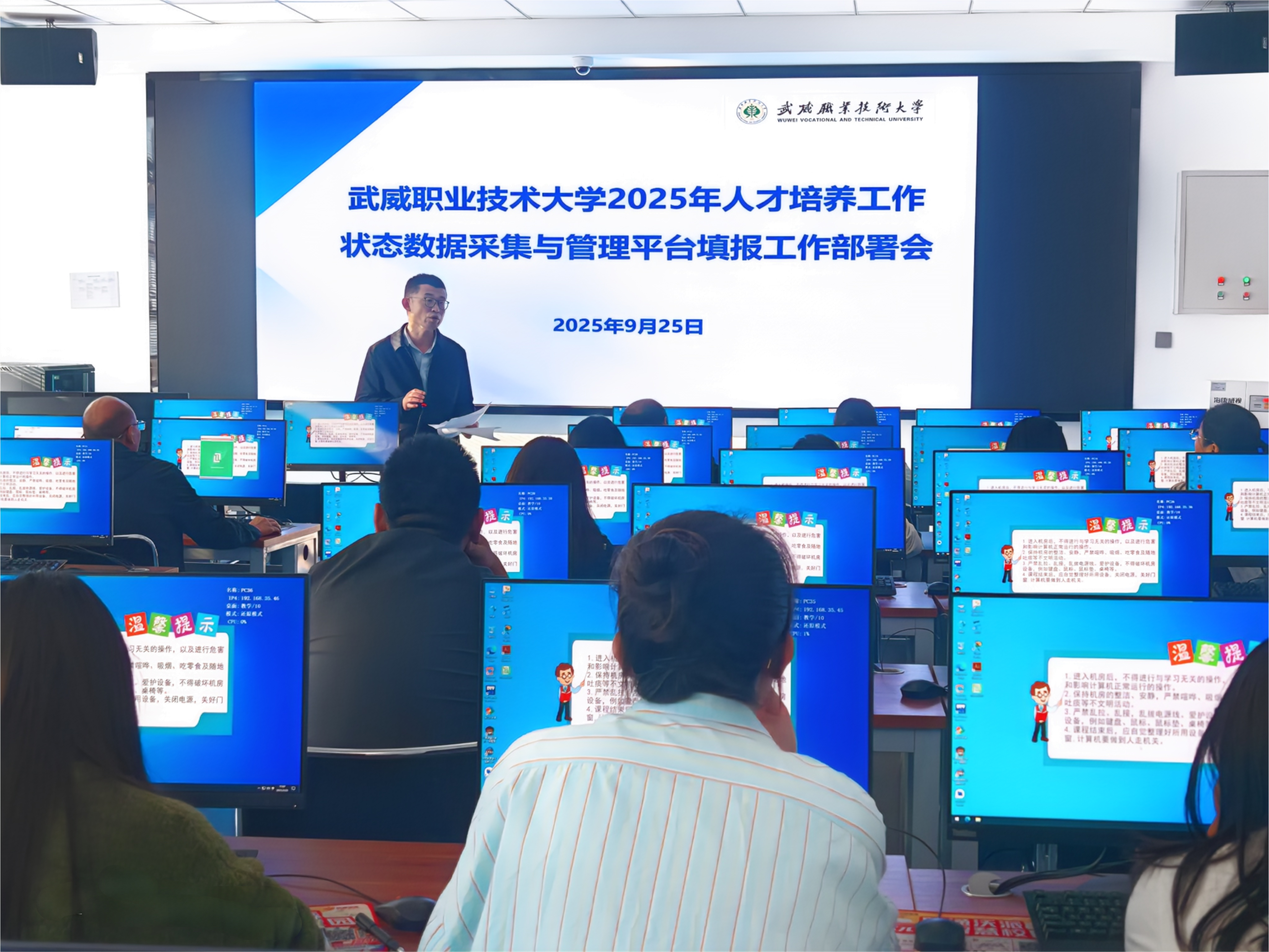 為深入貫徹落實教育部職成司《關于做好職業(yè)教育2024-2025學年數(shù)據采集工作的通知》精神,根據《甘肅省教育廳關于開展全省職業(yè)教育2024—2025學年信息數(shù)據采集工作的通知》要求,確保學校2025年人才培養(yǎng)工作狀態(tài)數(shù)據采集工作高效、有序開展。9月25日,教務處在篤行樓3樓機房組織召開學校2025年人才培養(yǎng)工作狀態(tài)數(shù)據采集工作部署會議。教務處、各學院(部)數(shù)據填報相關工作人員參加會議。
