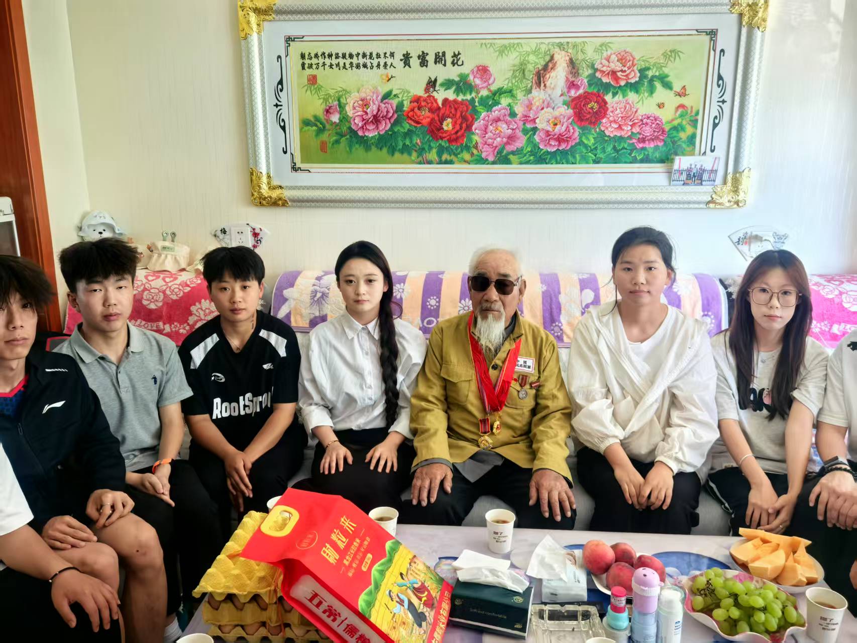 現(xiàn)居住于康寧新村八組、已93歲高齡的張克錄爺爺是參加過抗美援朝的退役老英雄。9月25日,堅(jiān)持駐村4年的靳東生老師與學(xué)?!八{(lán)天愛心協(xié)會(huì)”指導(dǎo)教師、青年大學(xué)生,帶著學(xué)校的牽掛、問候與崇敬,一起到張克錄爺爺家中,為老人送上關(guān)愛祝福,開展了一場(chǎng)“聆聽英雄故事、傳承紅色基因”的特別走訪、慰問活動(dòng)。張克錄爺爺精神矍鑠,身著掛有勛章的志愿軍軍裝,向師生們講述當(dāng)年志愿軍戰(zhàn)士冒著凜冽寒風(fēng)跨過鴨綠江,爬冰臥雪英勇戰(zhàn)斗的生動(dòng)事跡;驚心動(dòng)魄的戰(zhàn)斗故事,在老人樸實(shí)無華的語言中顯得格外感人,在場(chǎng)師生仿佛穿越時(shí)空,親眼目睹了志愿軍戰(zhàn)士們用血肉之軀筑起的鋼鐵長(zhǎng)城;說到動(dòng)情處,老人和師生們的眼眶已經(jīng)濕潤(rùn),師生心靈受到了深刻洗禮、愛國情懷得到了高度升華。