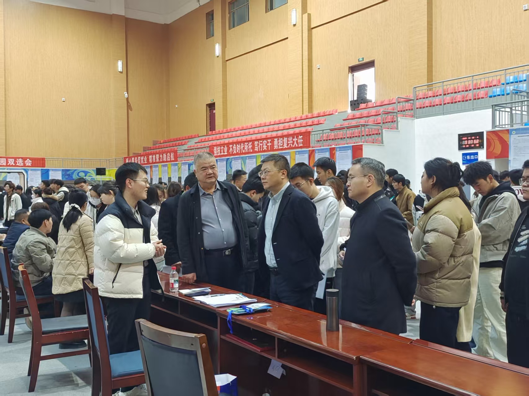 11月13日,校園招聘雙選會在學校體育館隆重舉行。校長李海軍、副校長王守云、伍國強親臨現(xiàn)場指導工作。李海軍詳細了解本屆畢業(yè)生的招聘需求與市場動向,走訪多家用人單位展位并聽取企業(yè)對學校人才培養(yǎng)的寶貴意見。同時,與應(yīng)聘學生進行親切交流,勉勵畢業(yè)生們要樹立正確的擇業(yè)觀,立足本職,服務(wù)社會,將個人成長融入國家發(fā)展大局。