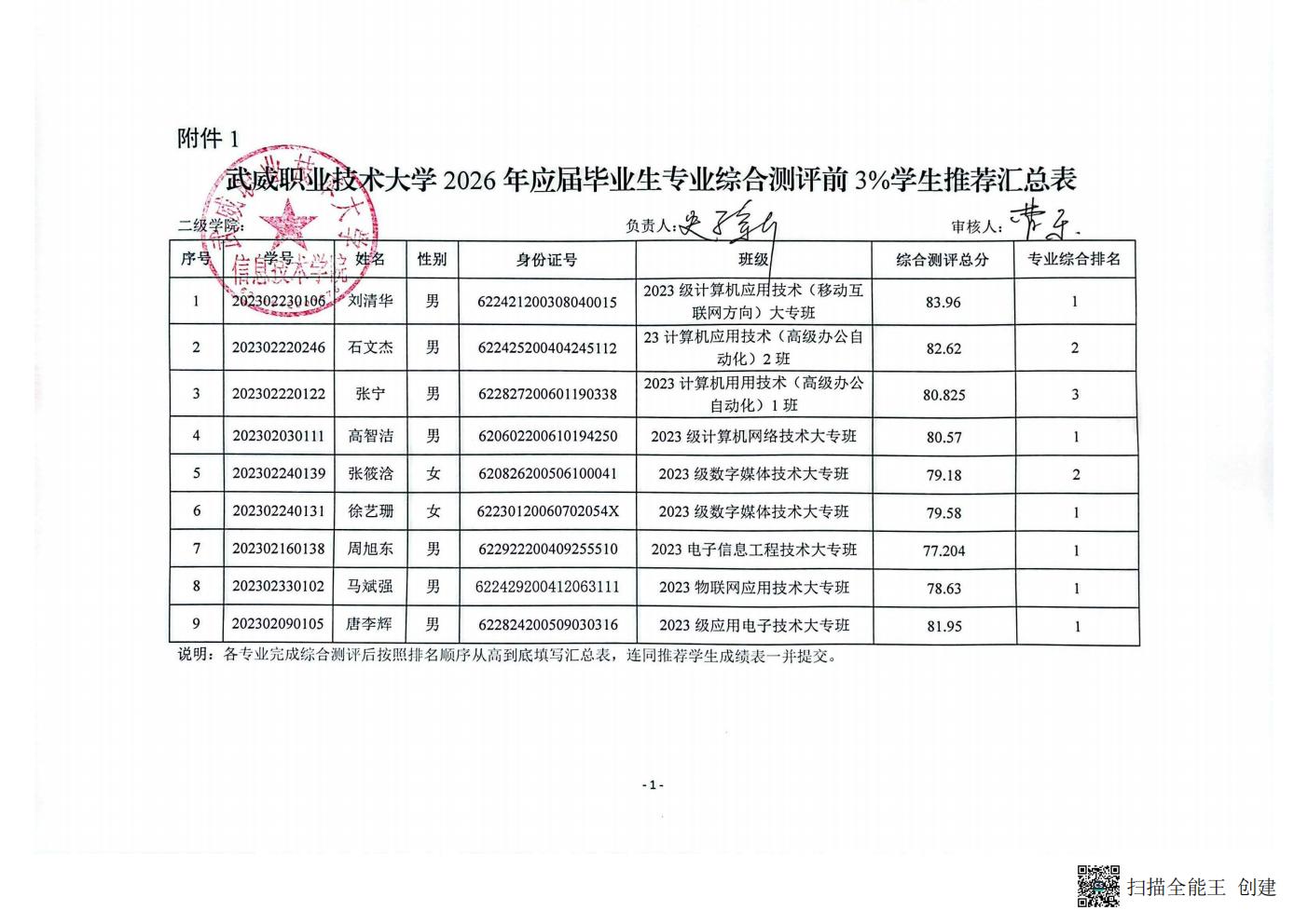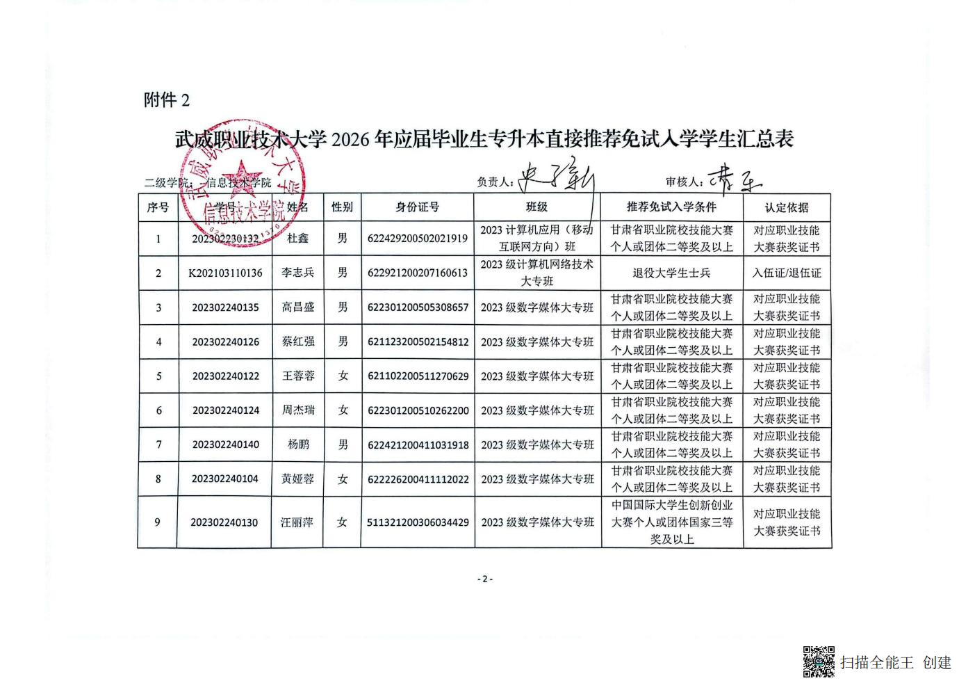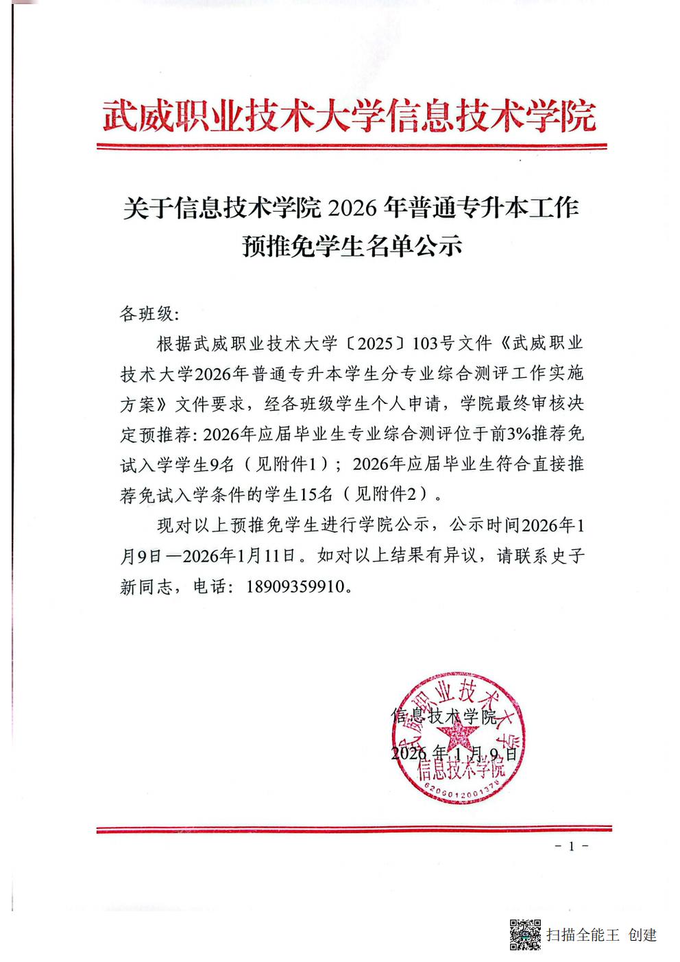 關(guān)于信息技術(shù)學(xué)院2026年普通專升本工作預(yù)推免學(xué)生名單公示