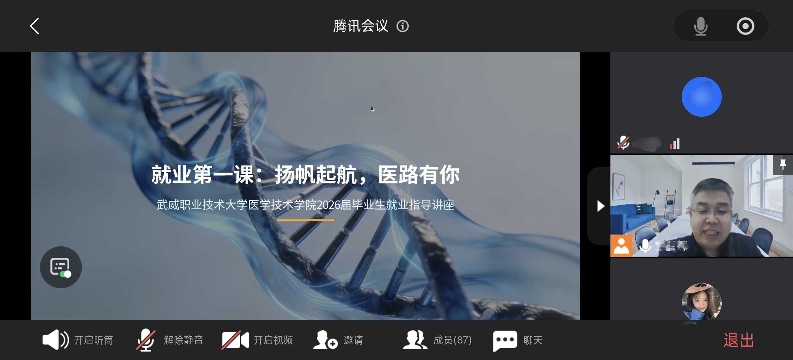 此次線上講座緊貼畢業(yè)生就業(yè)需求,內(nèi)容詳實、指導性強,有效緩解了同學們實習求職的焦慮情緒,為大家理清了就業(yè)思路、明確了發(fā)展方向。下一步,醫(yī)學技術(shù)學院將持續(xù)推進“暖心導航”就業(yè)指導系列活動,做好全流程就業(yè)服務,為2026屆畢業(yè)生順利就業(yè)保駕護航,助力學子們在醫(yī)療衛(wèi)生事業(yè)的舞臺上揚帆起航。