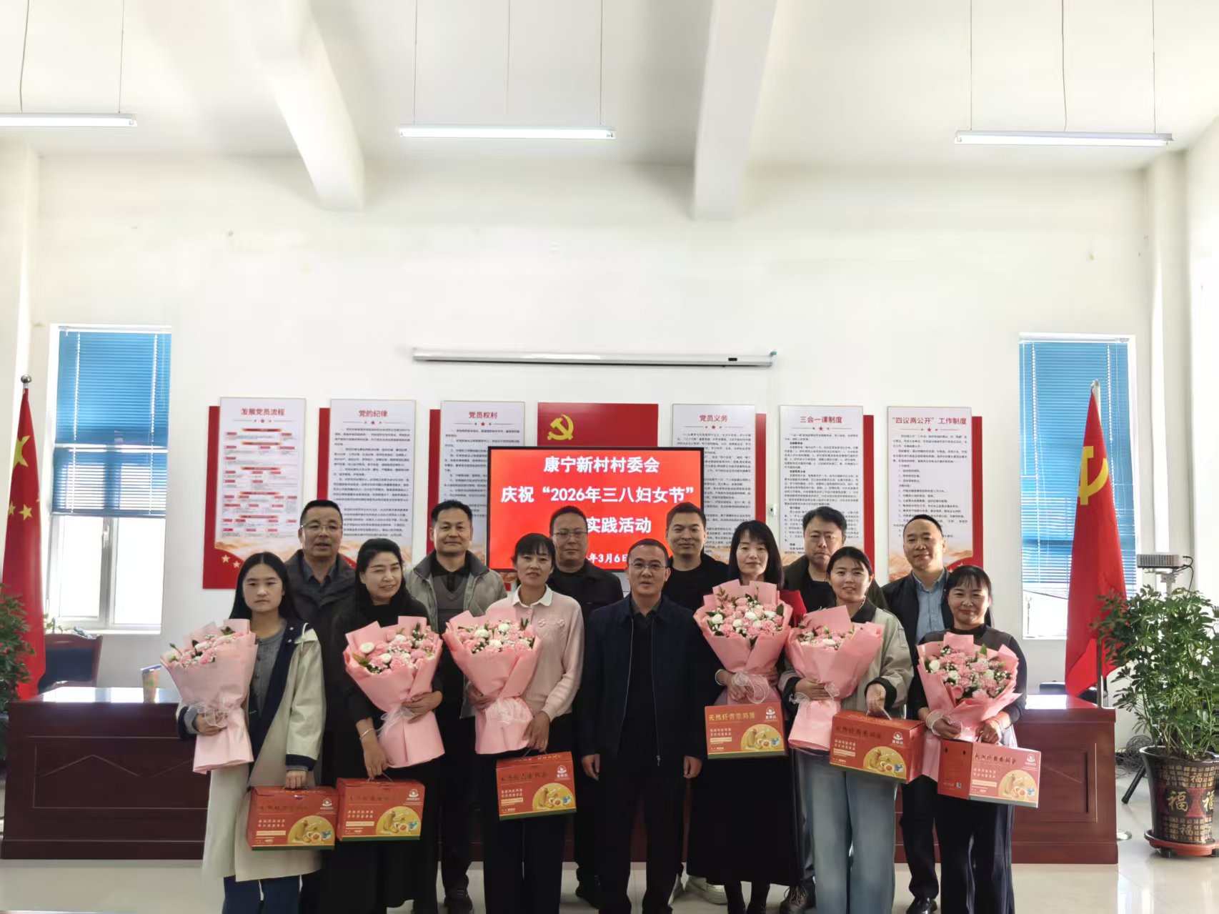 講座結(jié)束后,學(xué)校駐村幫扶工作隊(duì)與康寧、幸福新村聯(lián)合開展了“三八婦女節(jié)”慶?;顒樱瑸椤按鍍晌眿D女同志送上了鮮花、節(jié)日禮品和美好祝福。
